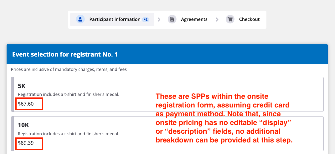 Note: For select regions, single prominent pricing also applies to onsite registration. See screenshot for a sample look at the onsite registration form when SPP enabled.