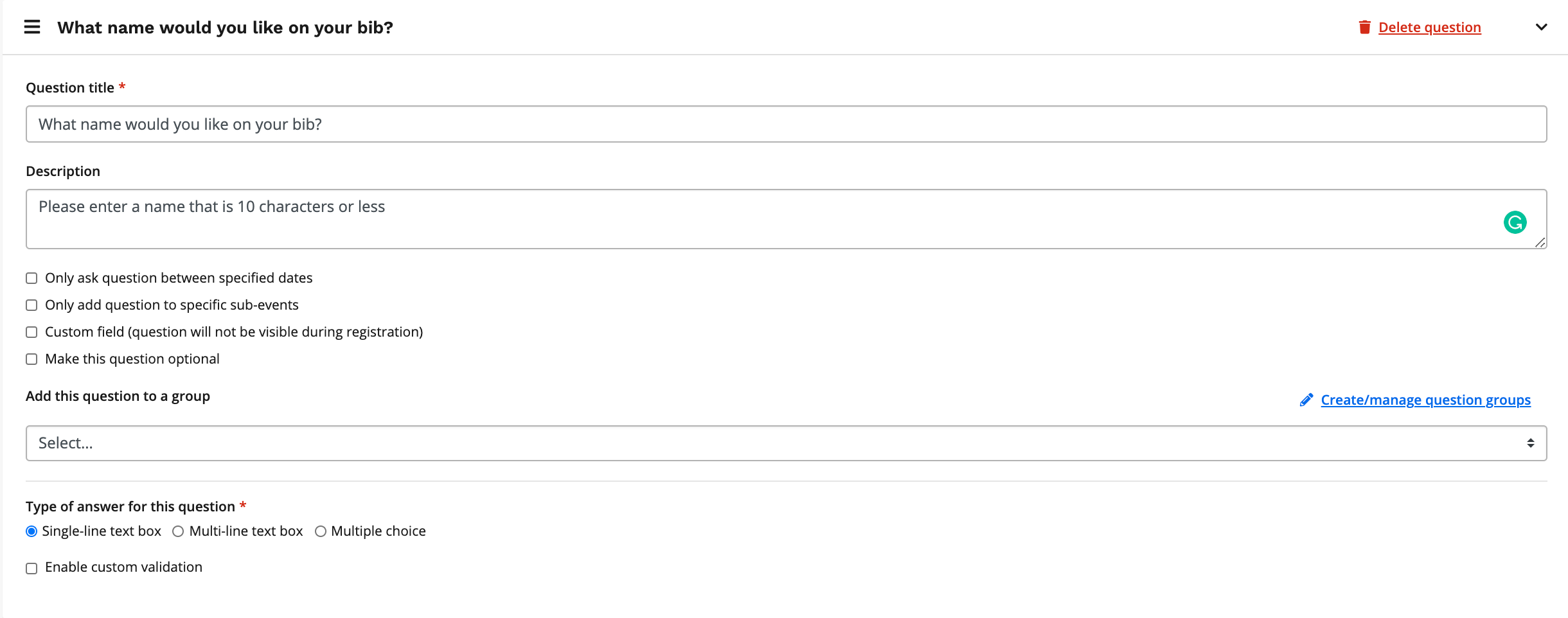 4. Enter the title of your question. We also recommend adding the format you would like entered in the description box.