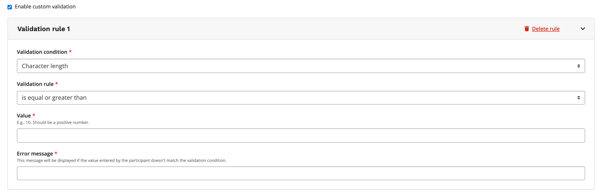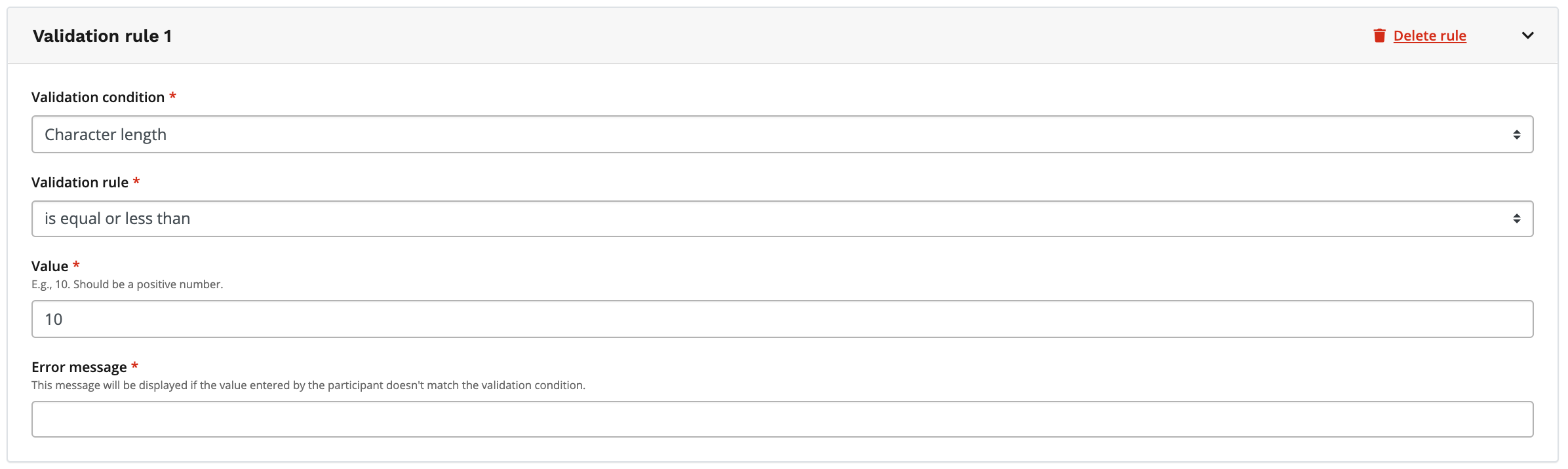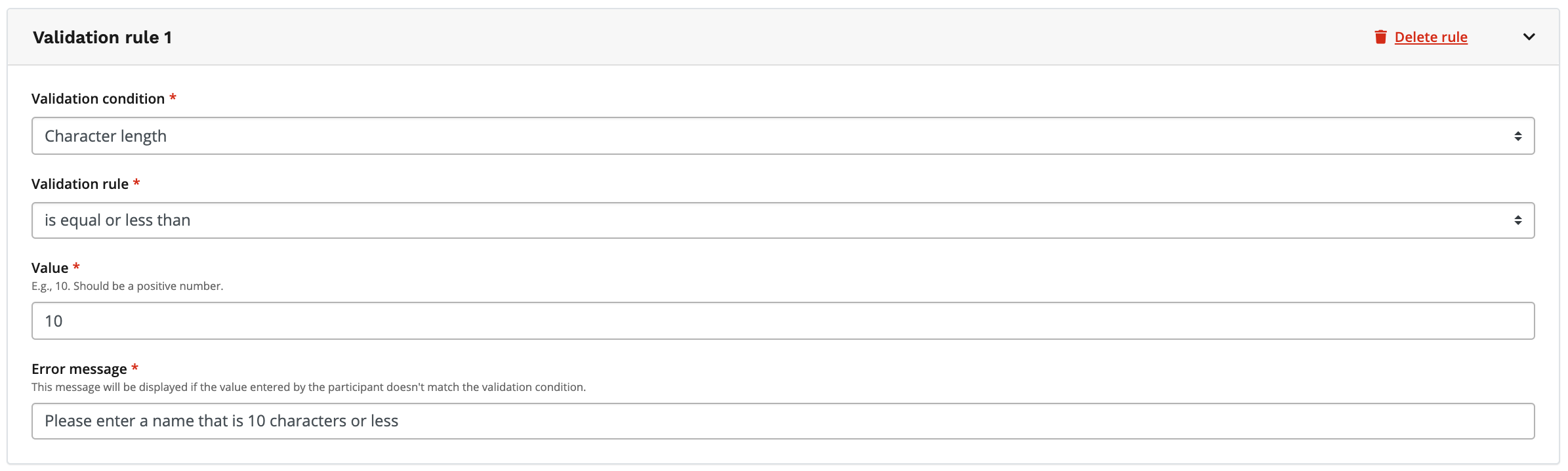 Validation questions allow you to ensure that a participant is responding to questions in the correct format. This is a feature that will allow you to keep your data clean.