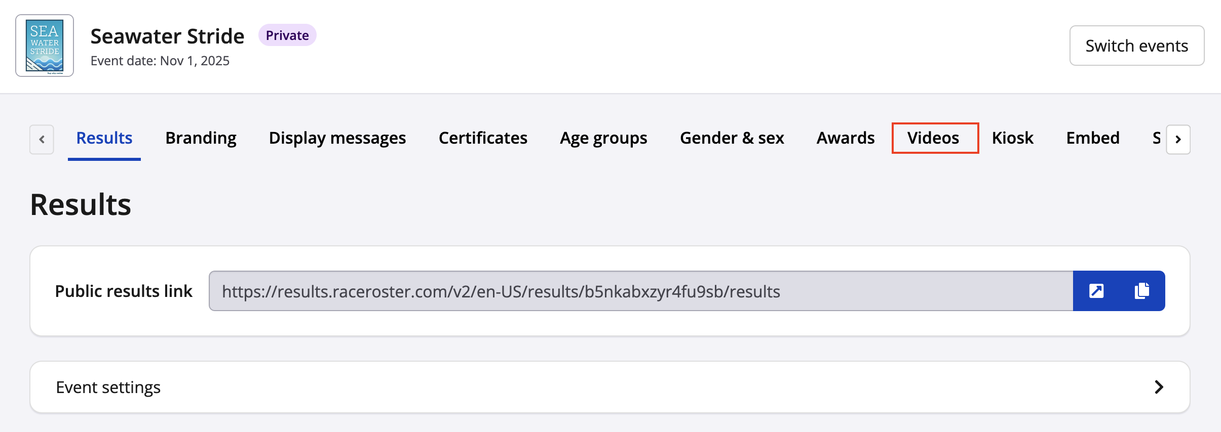 Setting up results videos