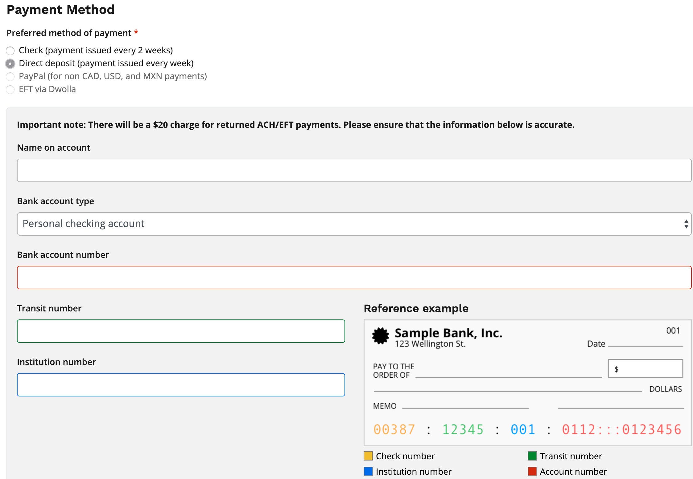How to set up your Payment Profile for Canadian Direct Deposit