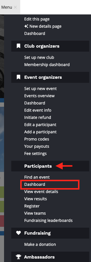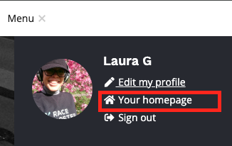 You may proceed to visit your event, club or organization dashboard, or to manage your timing company. We recommend first navigating to the top right and clicking Menu followed by Your homepage.