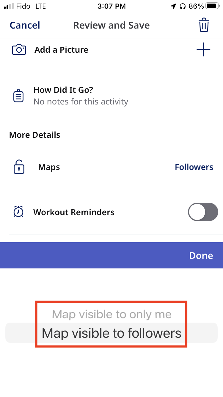 - Scroll down the page until you find the section titled maps viewable by. Click on this section, and you will see the same 3 options appear on your Runkeeper app for privacy settings as you see on the Race Roster page. Ensure that your activity is set to the same privacy setting as the one selected on Race Roster. Click done and then save at the bottom of the page.