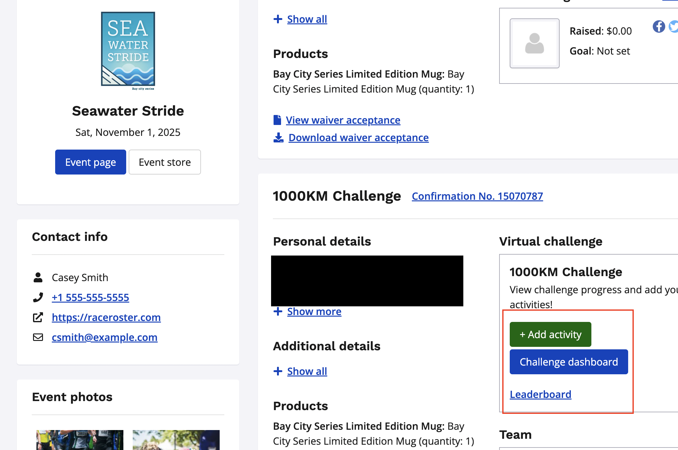 1. Login to your Race Roster account and head to your participant dashboard to find your registration for the virtual challenge.