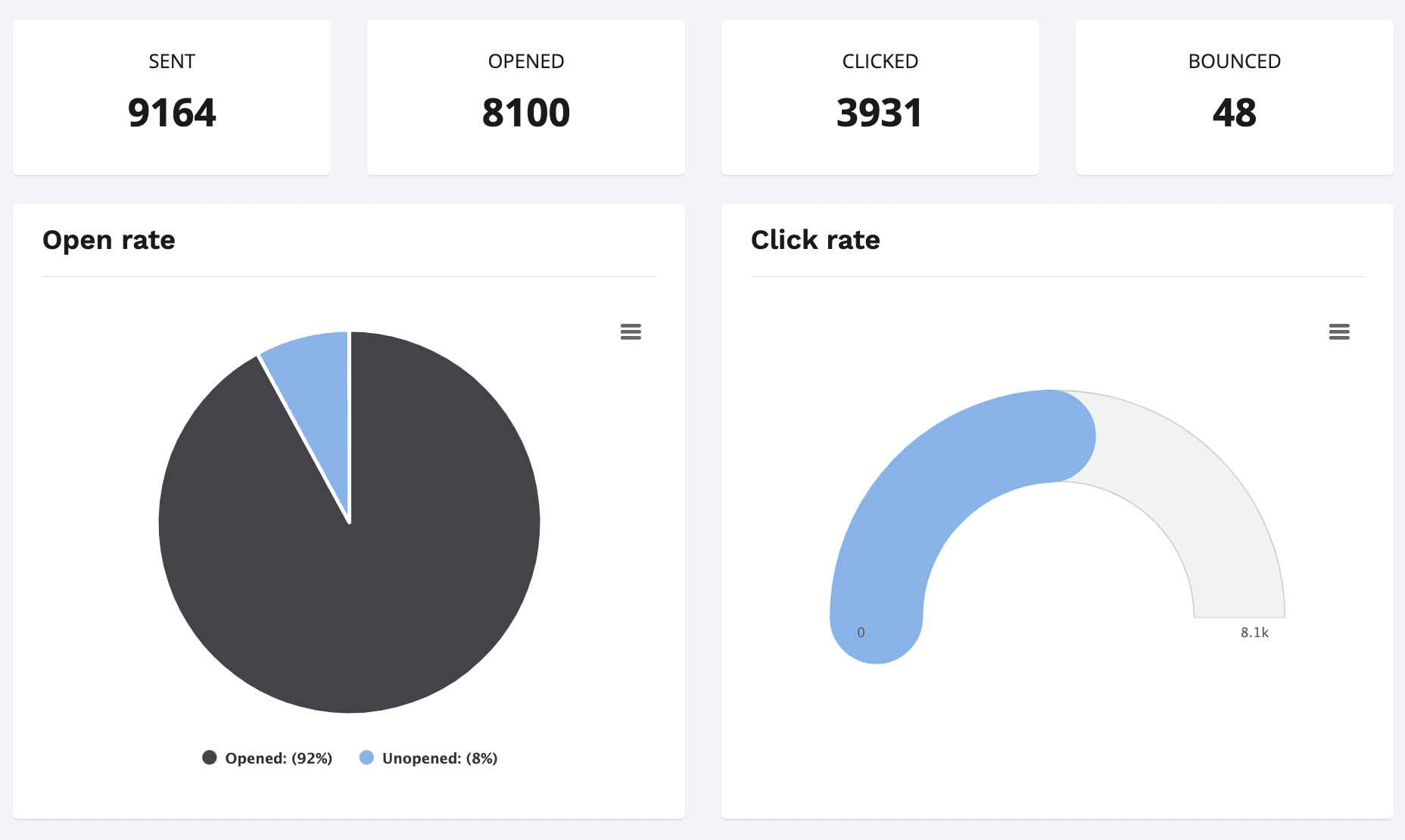 - Clicked: The recipient has clicked on any of the links, merge tags, or calls to action within your email campaign