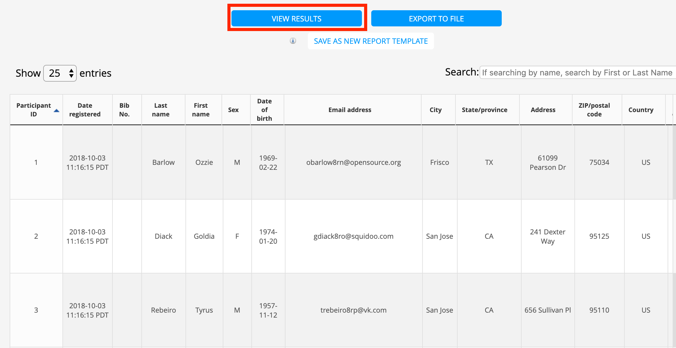 7. You can now Save as a New Report Template (helpful if you run this data all the time)or Export to File. You use this registration data for your marketing efforts and event planning.