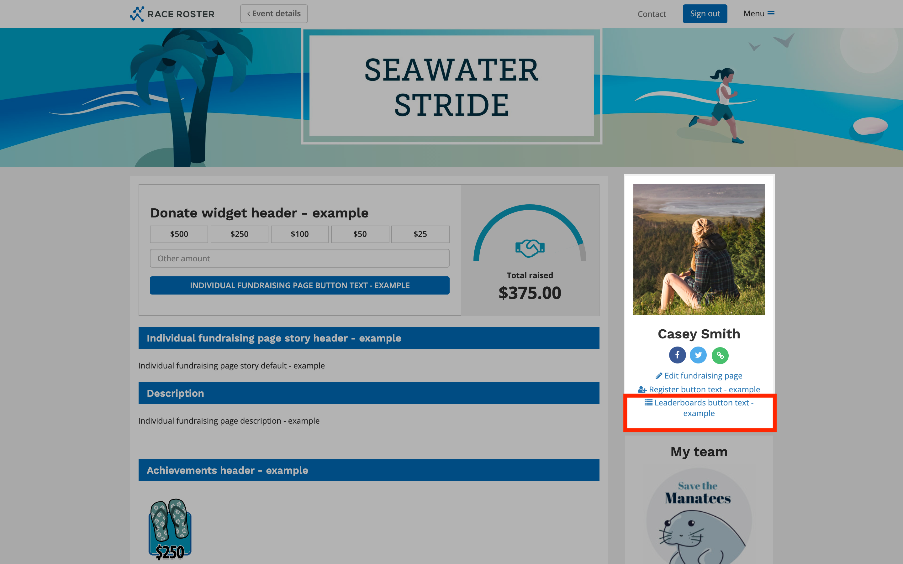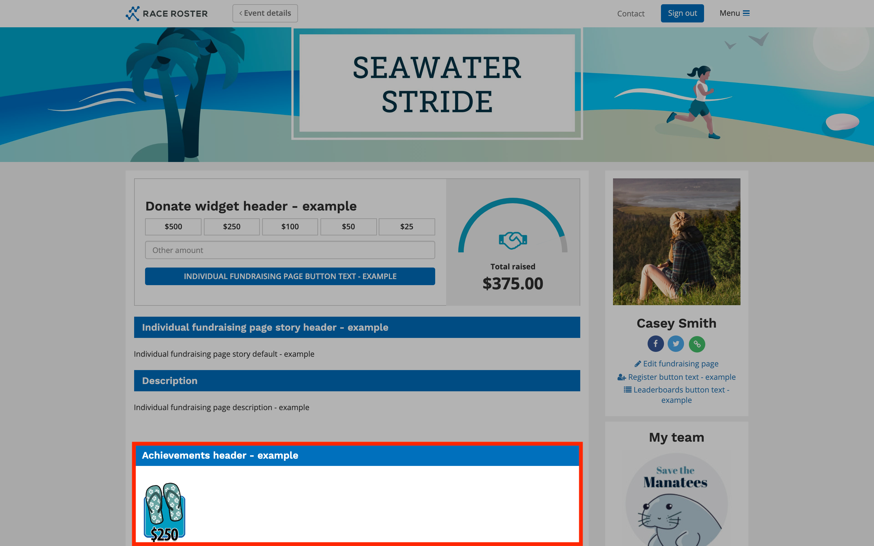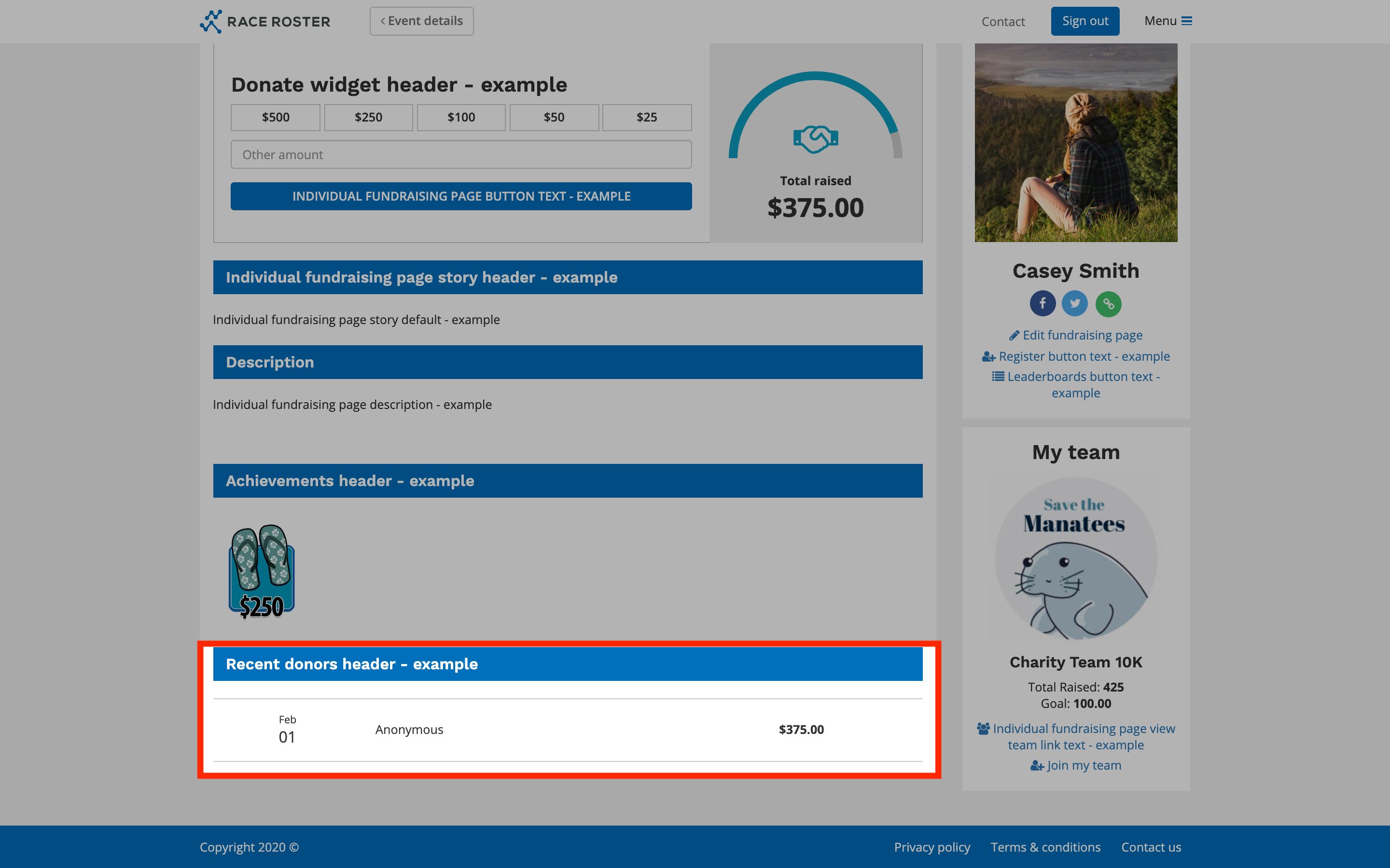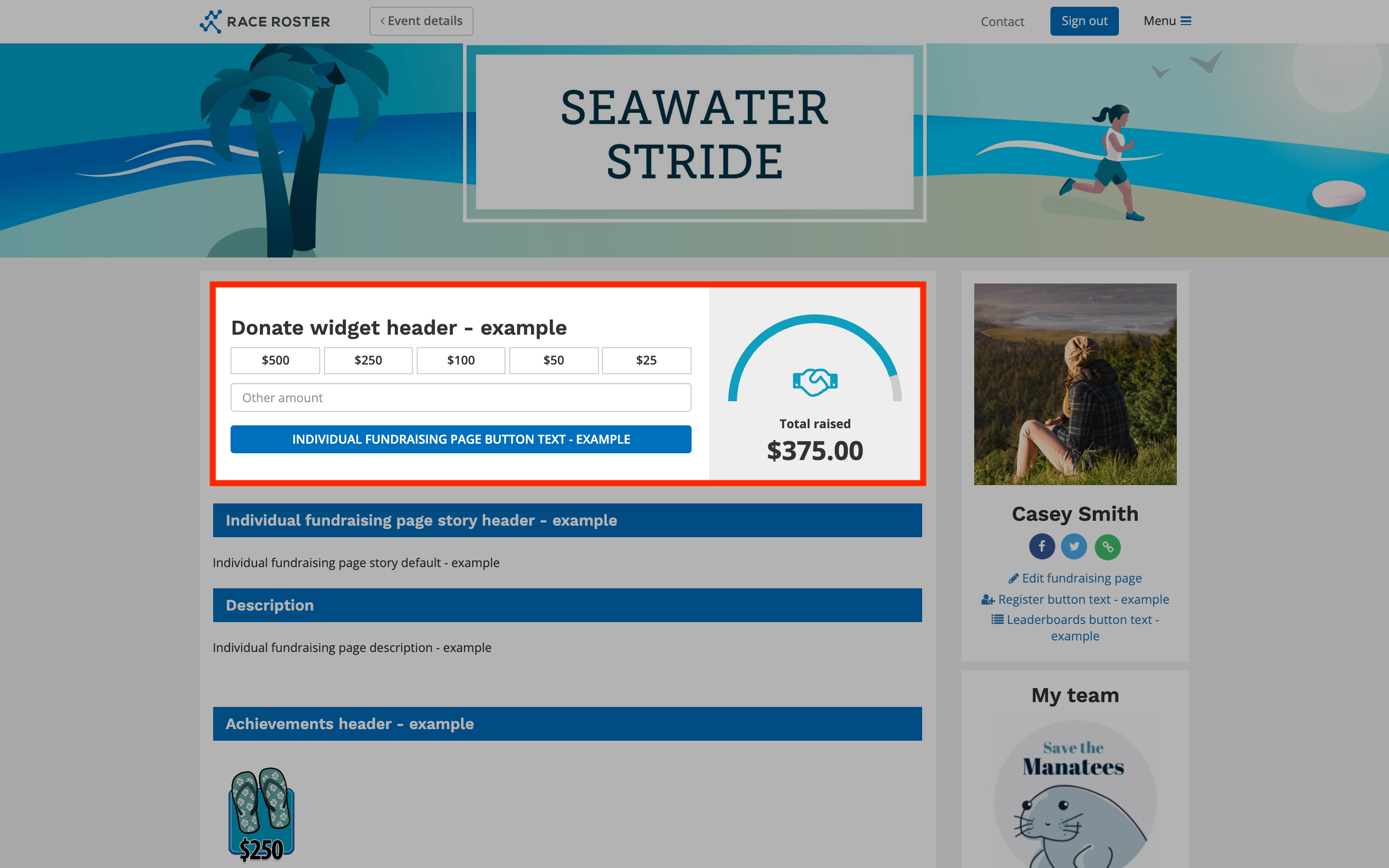 Settings here will override the copy that appears on both individual and team fundraising pages.