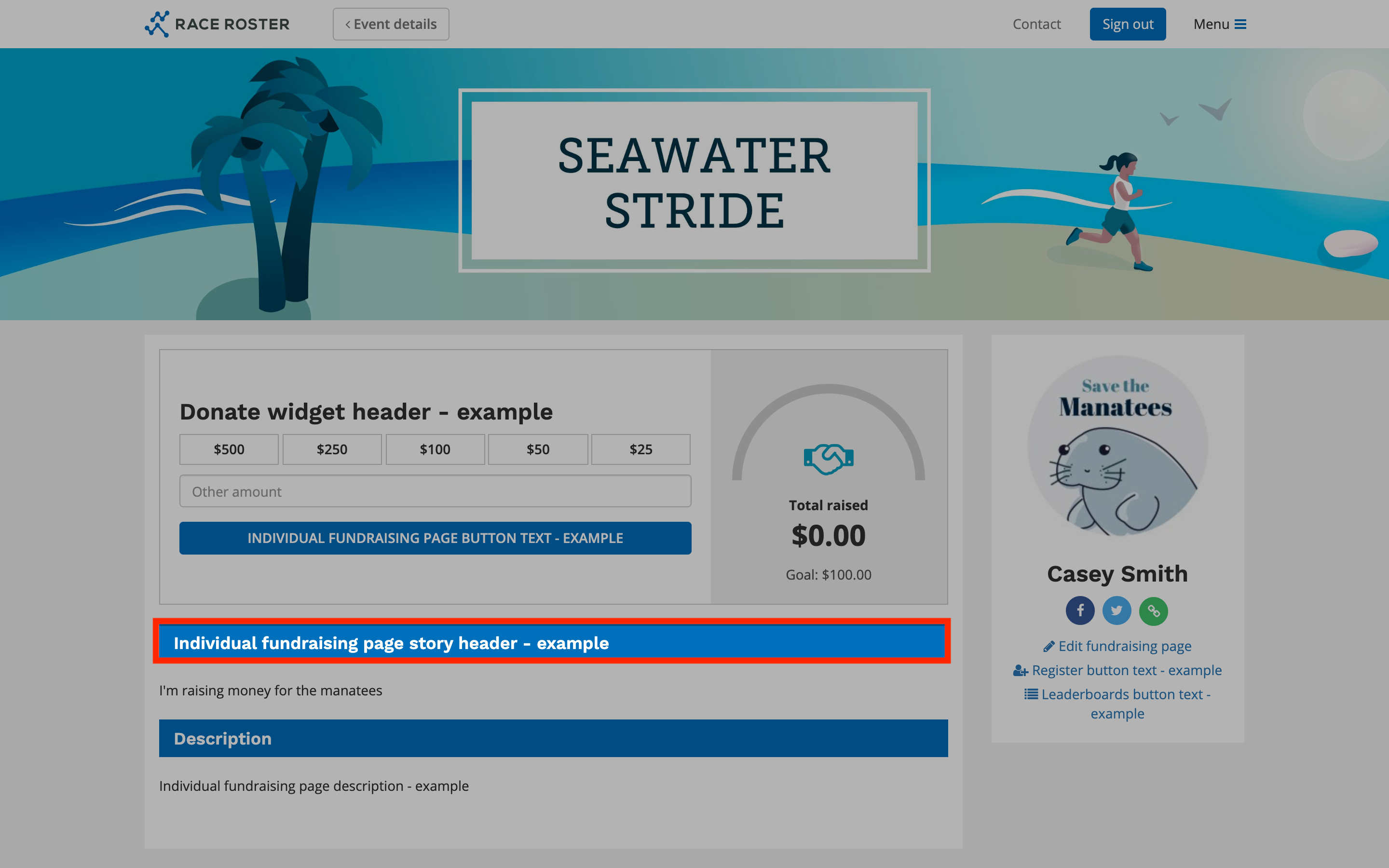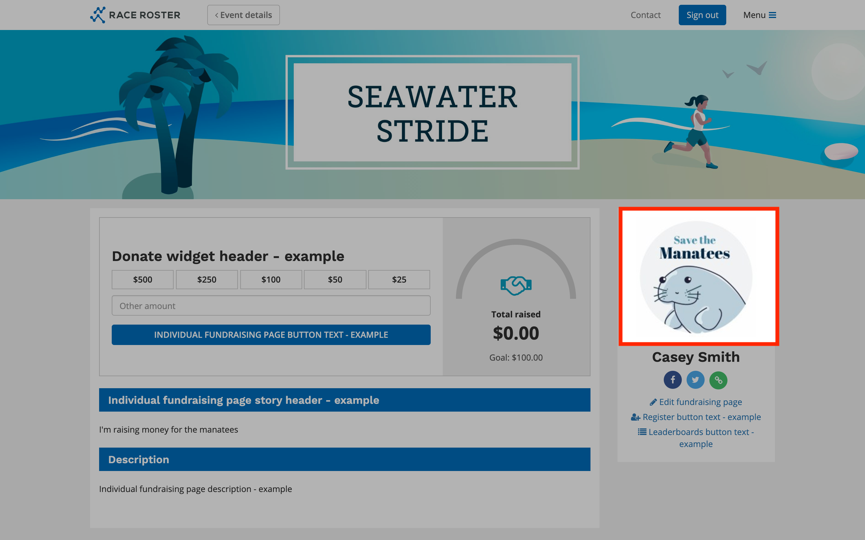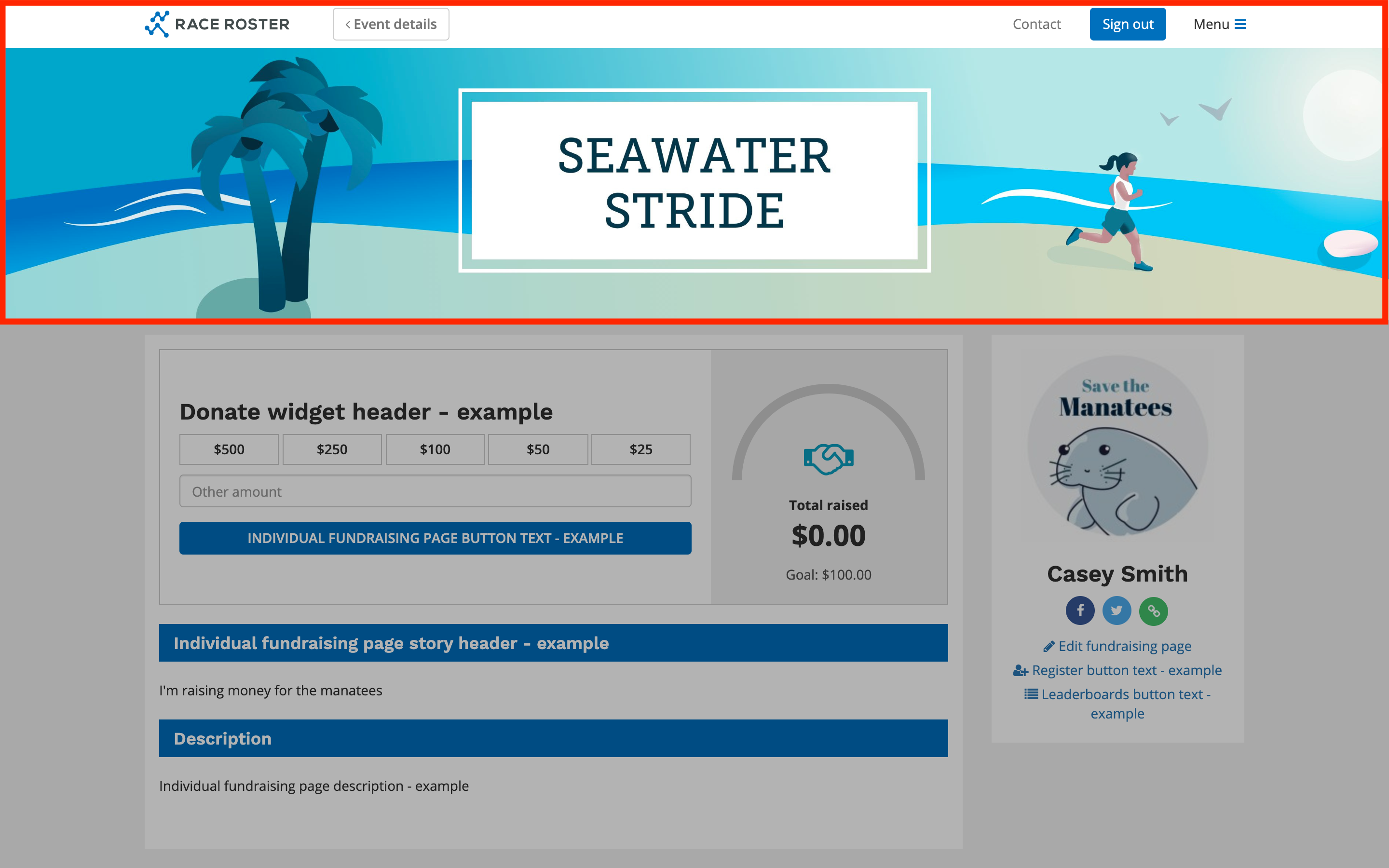 Individual fundraising page banner: