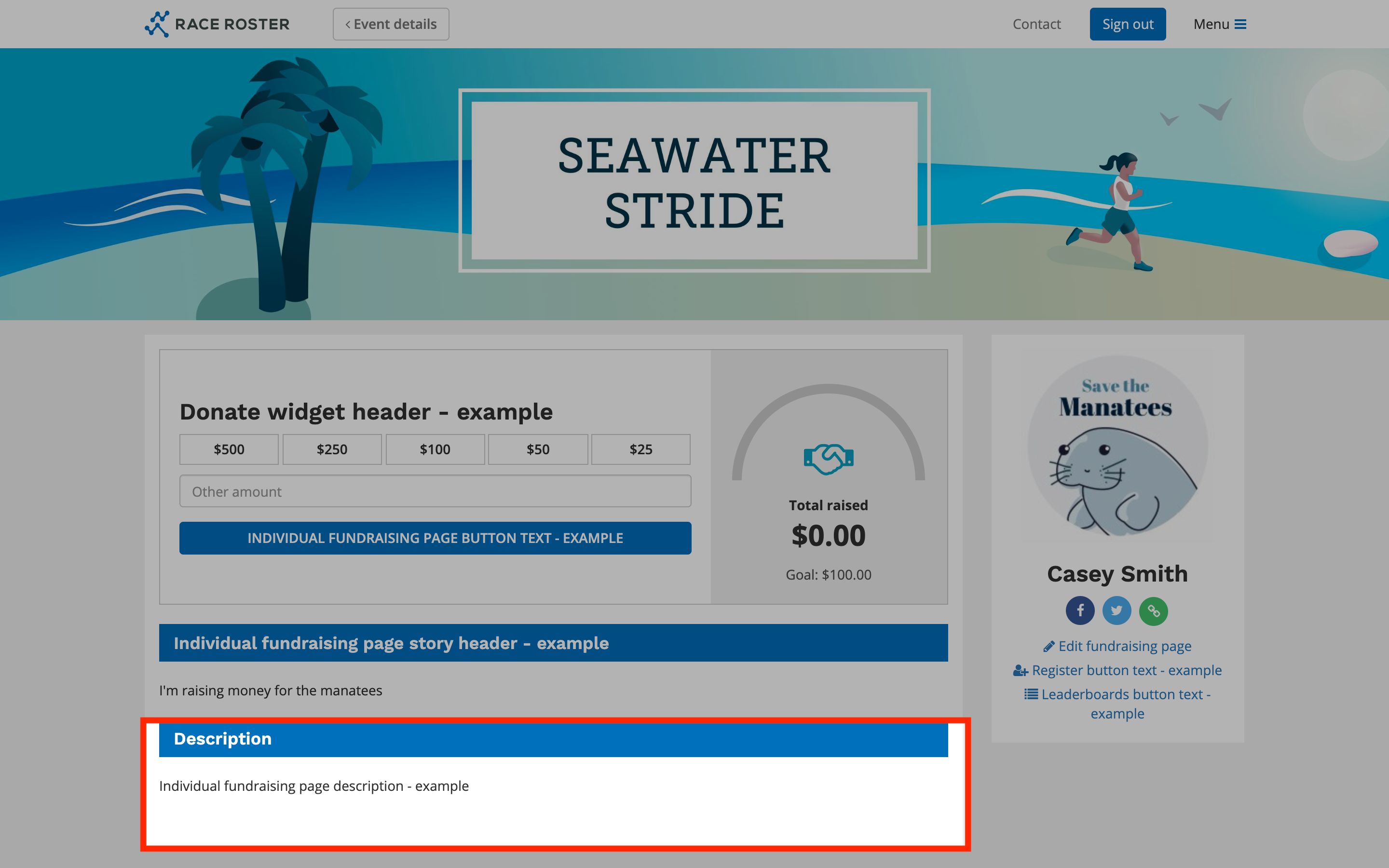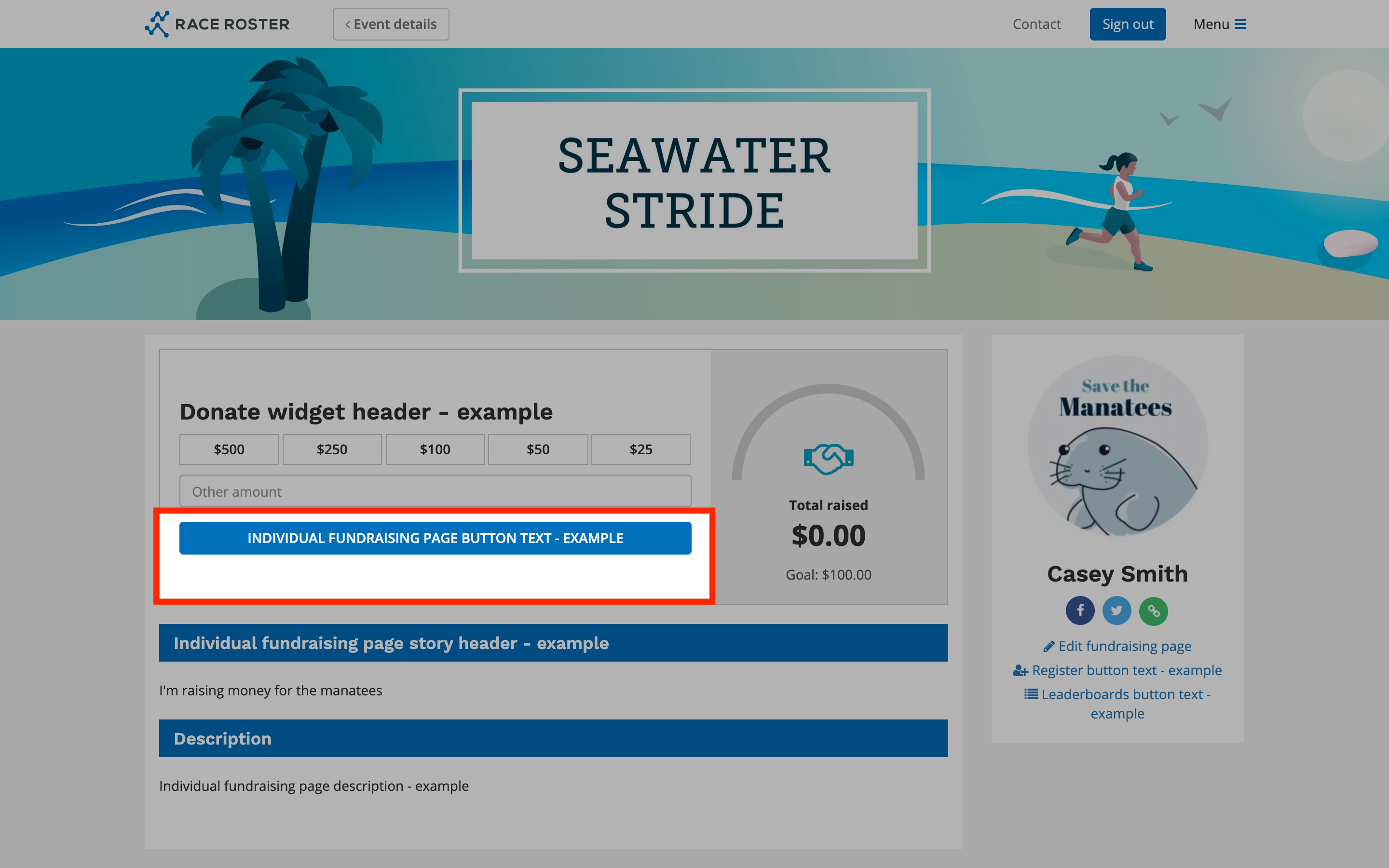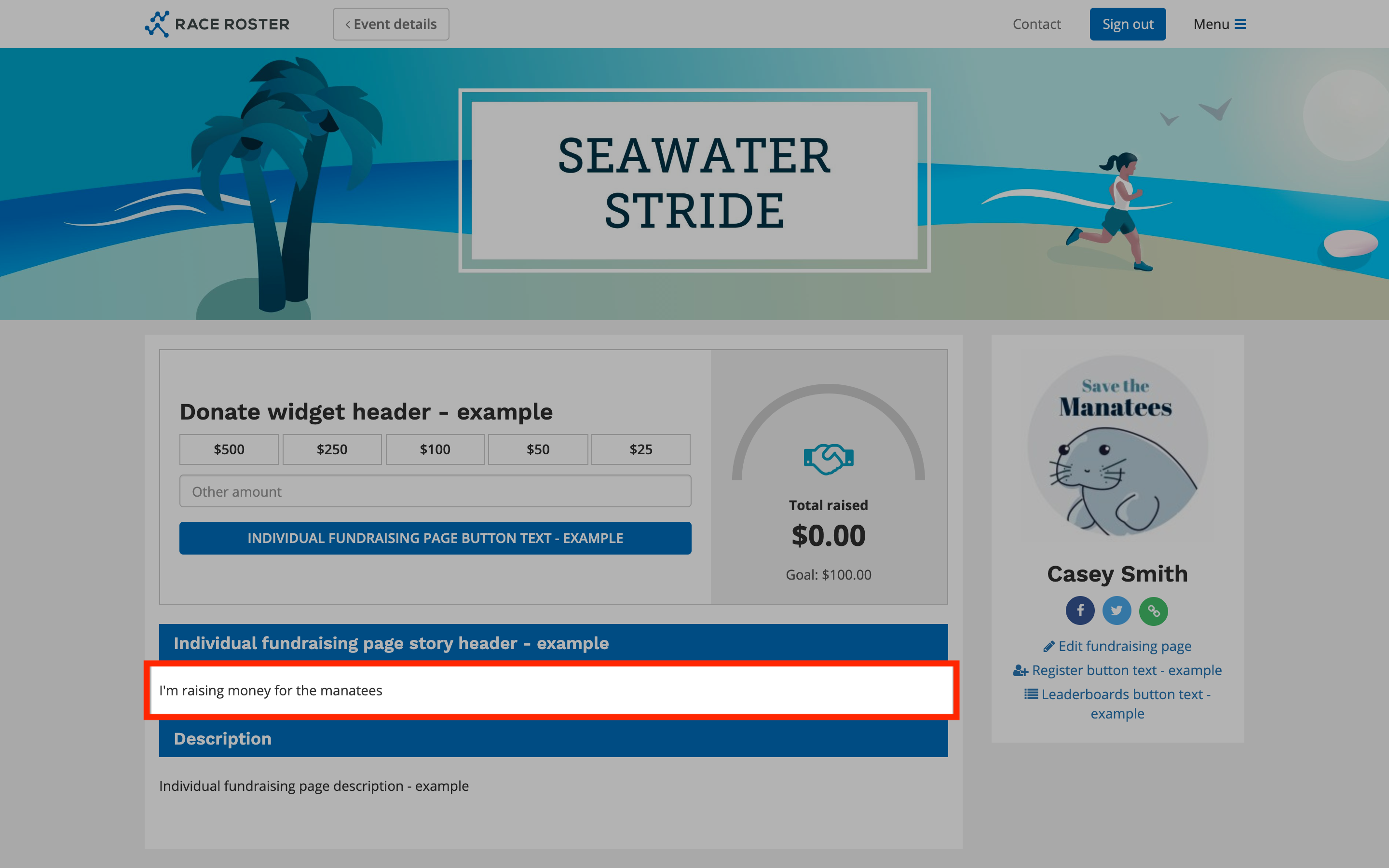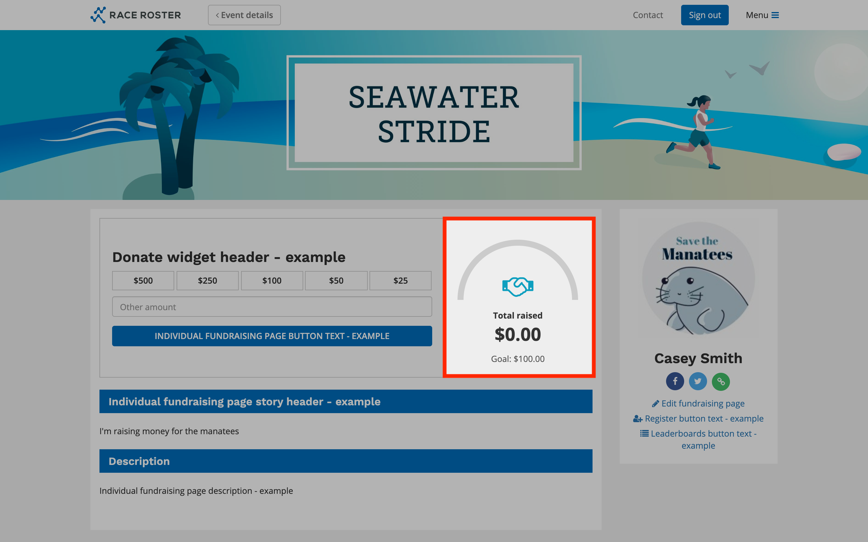 Individual fundraising page banner: