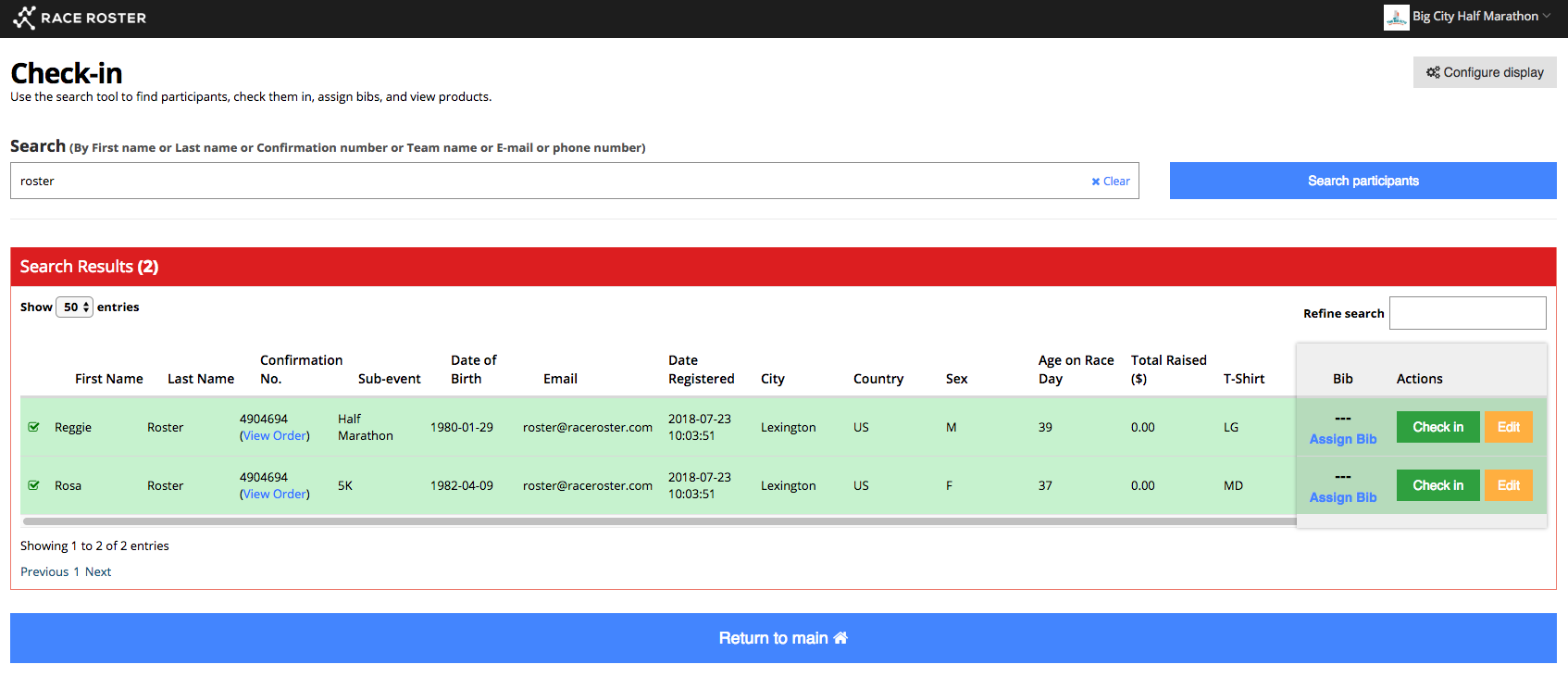 1. Once you are on the Onsite App check in screen, search for the group by first name, last name, confirmation number, team name, etc. You will need to find just one member of the group.