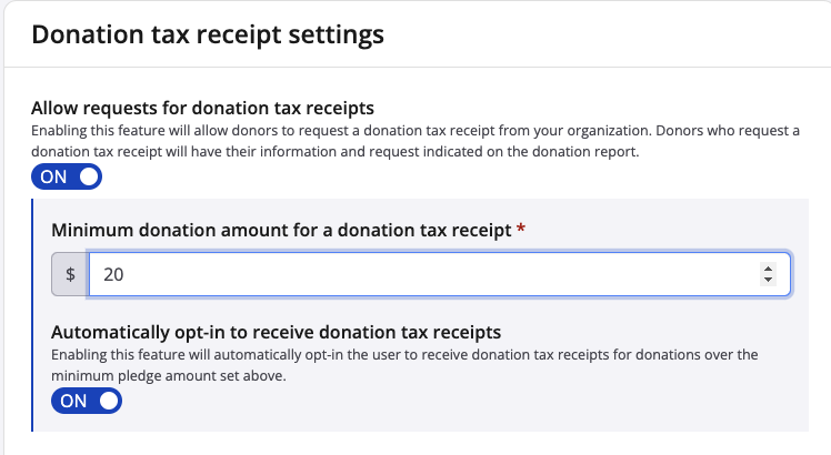 If you are currently allowing participants to request donation receipts, we have an additional feature that allows for the donation receipt issuance to be more automated.