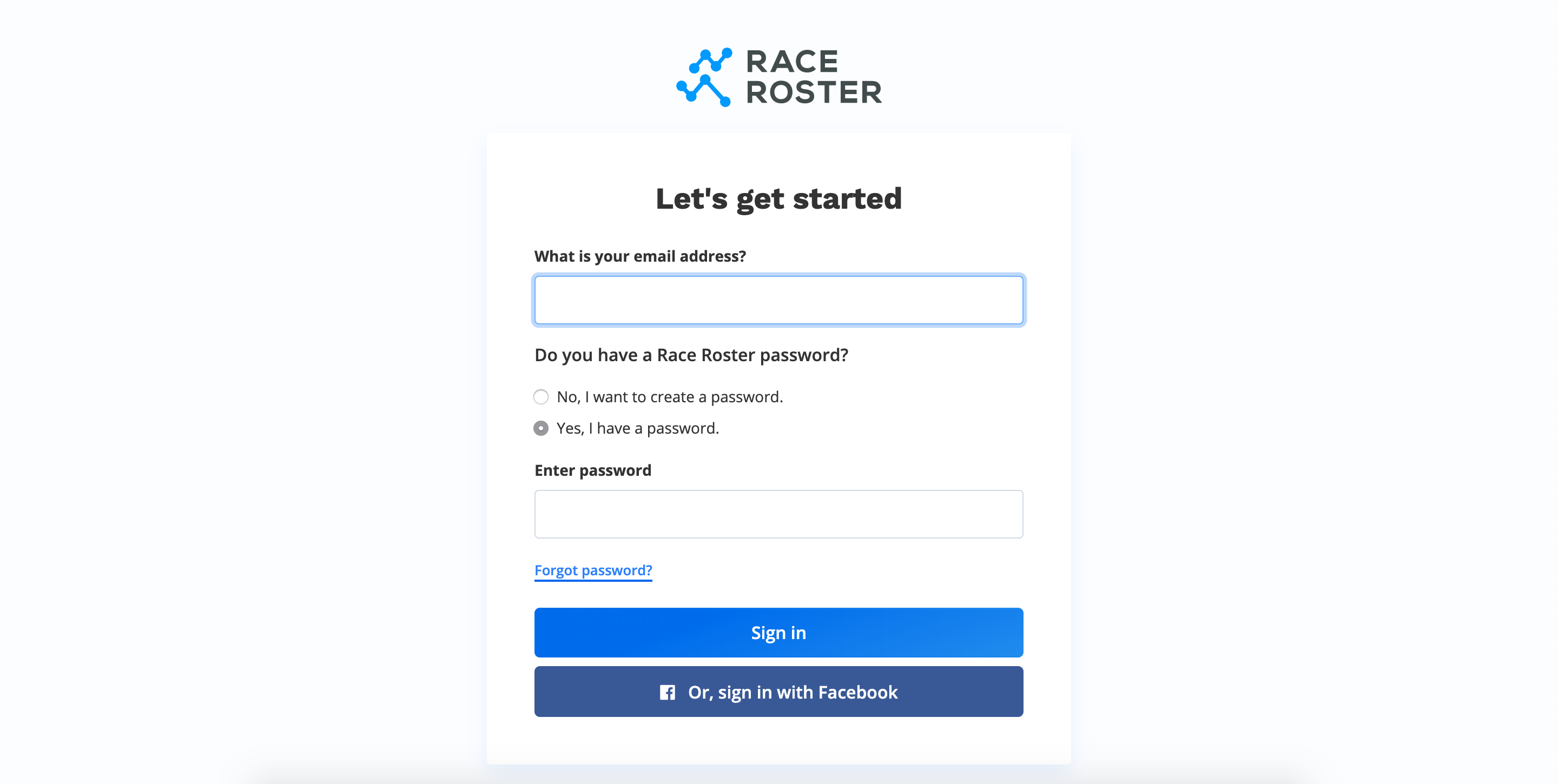 Signing in to Race Roster and accessing dashboards