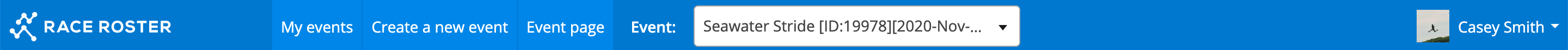 You will see an Event Name, [ID:Number], and (Date of the event) in a white box along the top bar. Ensure to select the correct event and year to review.