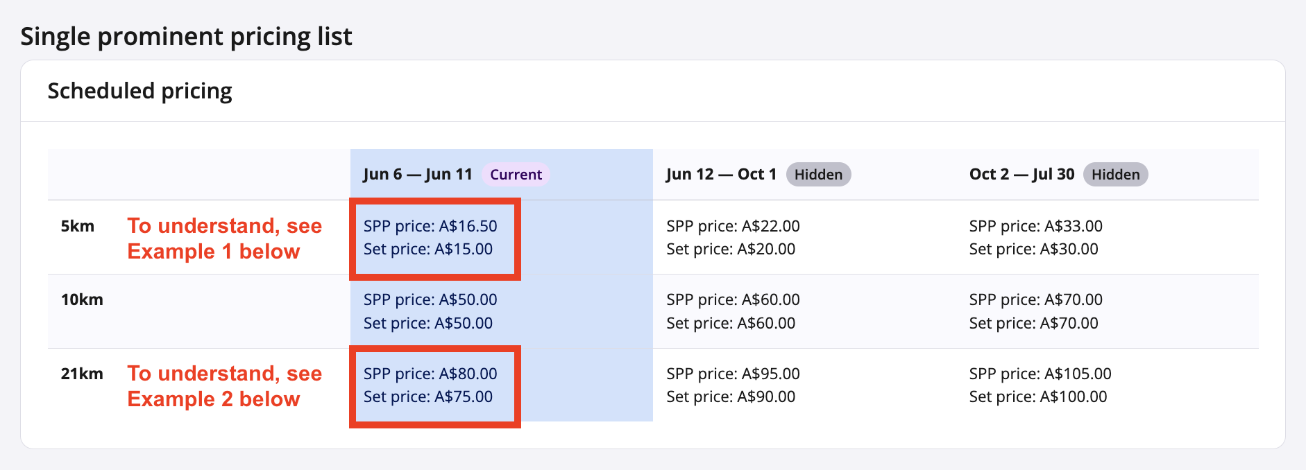 By contrast, in the screenshot below some of the SPP prices and set prices are different:
