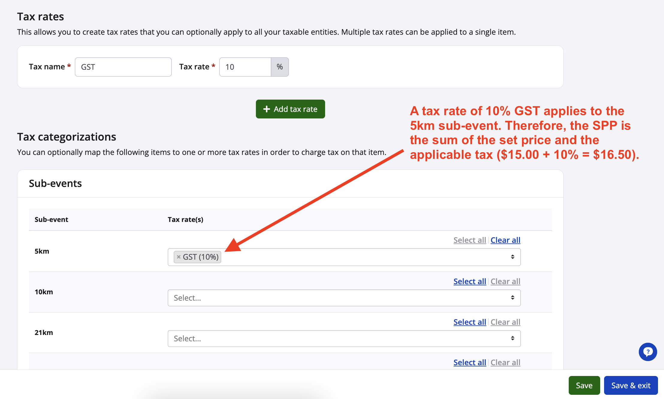 For Oceania regions where SPP is mandatory, configured sub-event prices on participant facing pages will be replaced with display prices calculated with the following components: