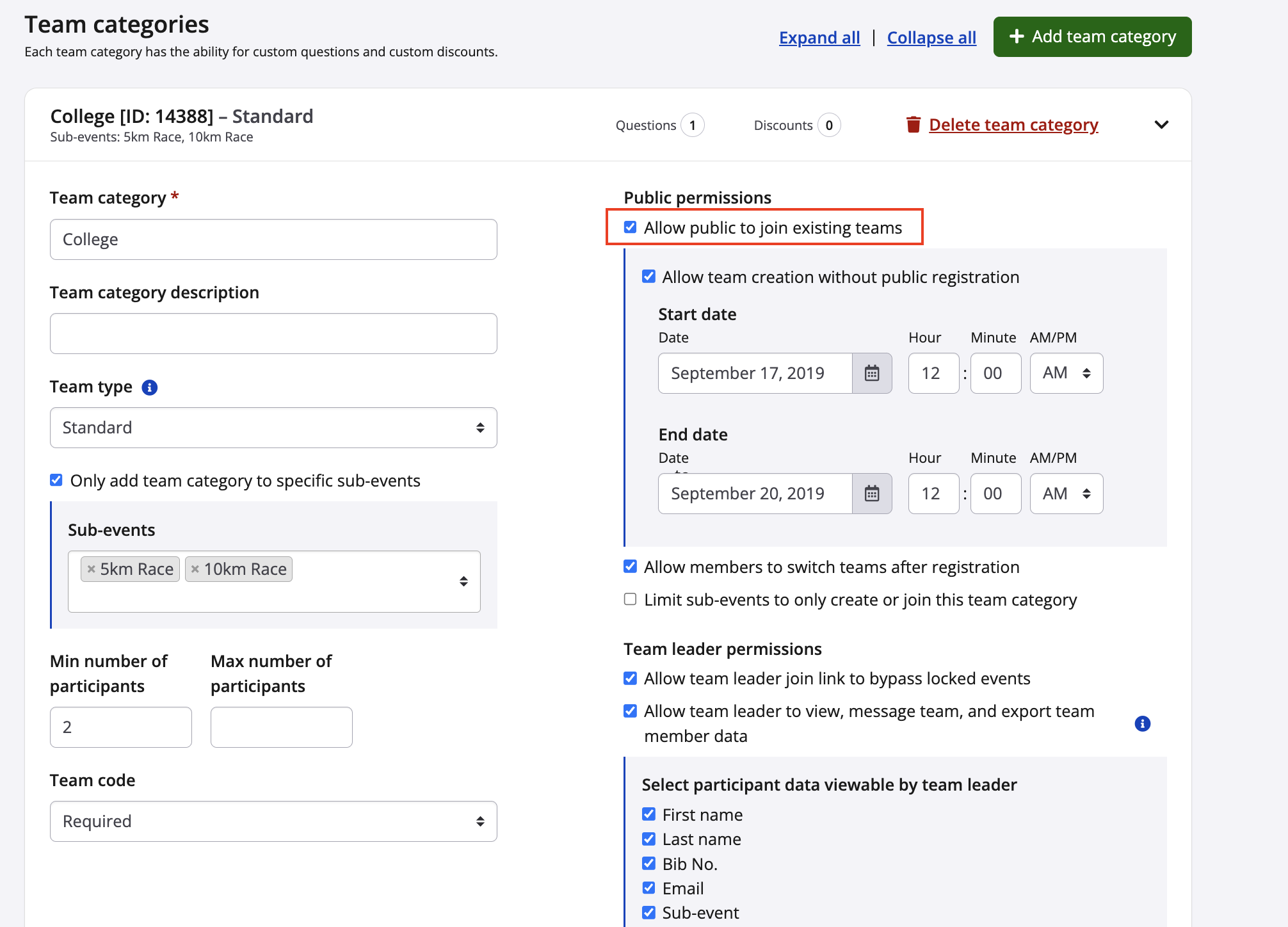 - Check the box labeled 'Allow Public to Join Existing Teams?'